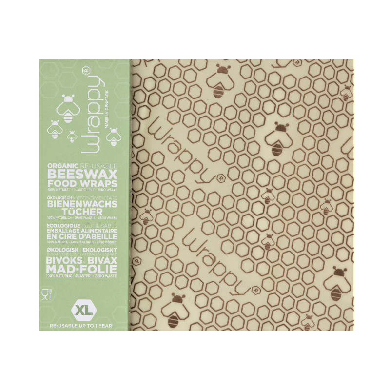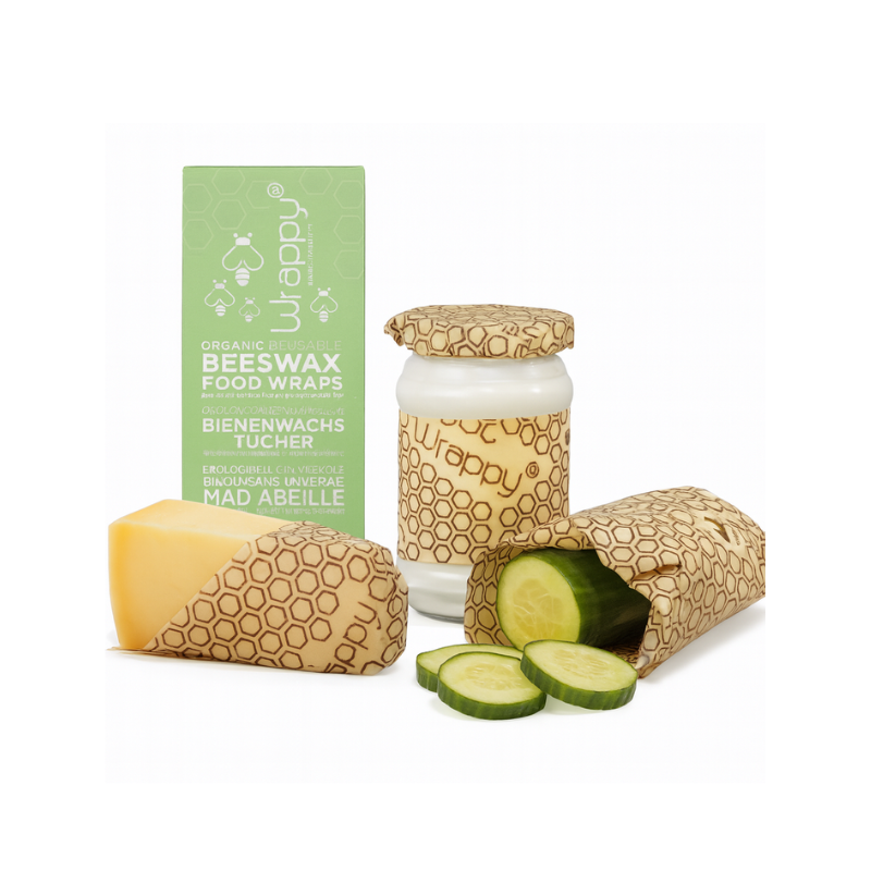 Wrappy® wird aus Bio-Baumwolle hergestellt, die sorgfältig mit Bienenwachs, Harz und Jojobaöl behandelt wird. Damit können alle Haushalte sowohl Geld sparen als auch eine enorme Umweltverschwendung verhindern. Der feine Druck auf den Baumwolltüchern wurde natürlich mit umweltfreundlicher Farbe hergestellt.