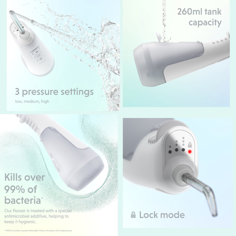 Der Ordo Hydro Sonic Water Flosser wurde von Zahnärzten entwickelt und getestet, um sicherzustellen, dass Sie zu Hause oder unterwegs die gründlichste und effektivste Reinigung durchführen können.